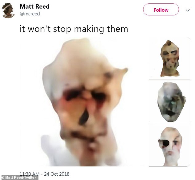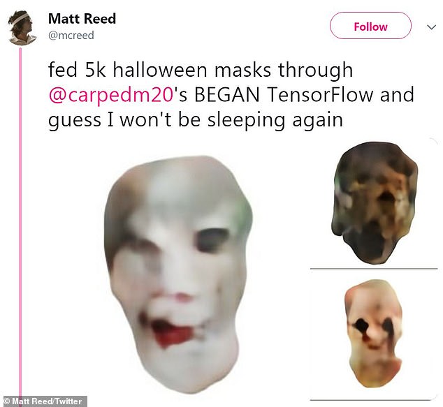 里德称,它的工做体例是使两个收集彼此合作,其成果简曲令人。最后,使其可以或许设想出本人的万圣节面具,该算法只能生成由难以分辩的像素构成的掩码。