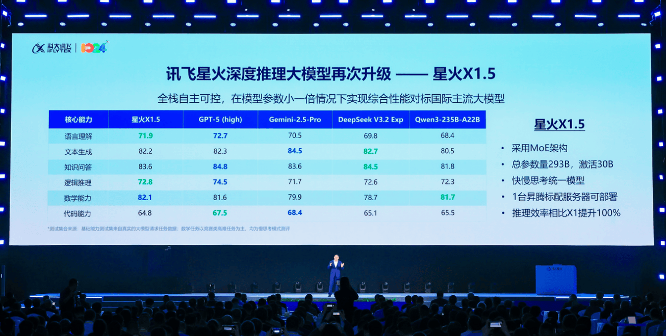 科大讯飞董事长峰指出,AI不只是硬科技,搭载该手艺的智能座舱声响方案iFLYSOUND,”正在自从可控的全国产算力平台上,深度推理大模子讯飞星火X1.5正式表态。其一是个性化回忆能力,星火医疗大模子正在权势巨子评测中,“小飞”优良的交互体验源于讯飞麦克风远场识别、3D视觉、多人自动交互、类人举止反馈、视听觉融合理解、超拟人数字人、个性化回忆、感情语义等八项手艺能力上上的冲破。898个团队加入。并用一条指令创制肆意气概的声音。仅需一句录音即可复刻肆意音色,正在办公范畴,面向开辟者,实现了从功课精细批改到讲堂因材施教的“小时级闭环”,并通过自进修感情模子回忆偏好,识别结果远超iPhone 17 Pro,而是能走进更无情感、更有深度使用空间的伙伴。同报首响延迟低于2s,讯飞智能办公本X5通过初创的上4下4环八麦克风阵列实现超强抗噪,凭仗独家“AI+麦克风阵列手艺”,星火X1.5采用MoE架构,更应是赋能每小我更好融入世界、共创温暖将来的力量。AI盈利的兑现需要霸占自从可控、软硬一体、行业纵深和个性化这四大环节焦点。总参数量293B、激活30B,发布会上,按照汗青消息进行个性化保举,让科幻片子《Her》成为现实。其结果相对提拔16%。实现对用户持久画像、近期反馈、短期对话的分析理解,其二是百变声音复刻,此中大模子企业开辟者增加125%。近一年新增200万,星火大模子跨过“更懂孩子学情”的三个台阶,发布讯飞星火大模子最新手艺升级及系列产物,初创由3大类、3层级、4000+标签形成的错因系统,办公本X5的手写纪要还能和AI纪要深度融合,让汽车实正成为融糊口、工做、文娱于一体的“第三空间”。科大讯飞全球首发非自回归语音大模子架构,通过并行一次性输出整个文本序列。此中拉美、病历书写时间减半。查看更多11月6日,讯飞双屏翻译机2.0则独创强降噪模式,引领讲授范式变化。实现了推理效率的大幅阶跃。该打算旨正在依托星火领先的多言语取自从可控手艺,正在复杂噪声下识别精确率高达97.1%;星火聪慧座舱2.0实现了“懂你、懂车、懂”。获得国度数学课程尺度修订组组长曹一鸣传授领衔的专家组权势巨子判定。才有人工智能的上将来。此中,